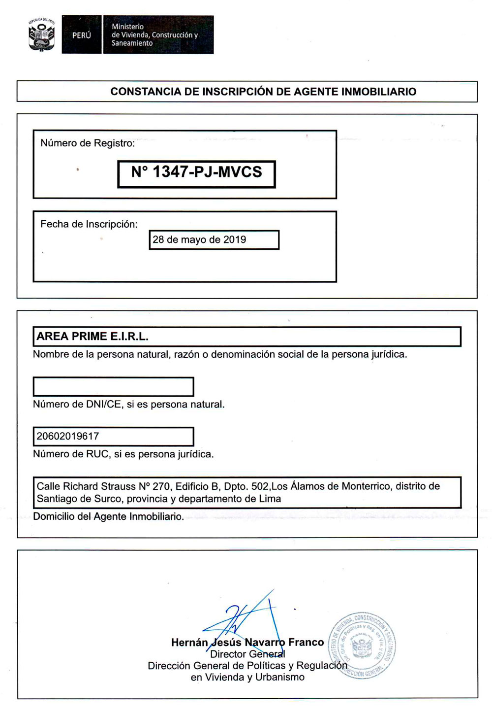 Constancia de inscripción